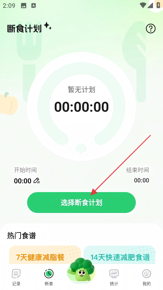 2、在断食计划页面,点击【选择断食计划】,进入断食计划选择列表。
