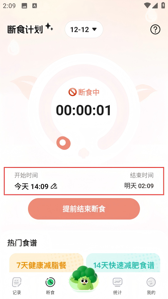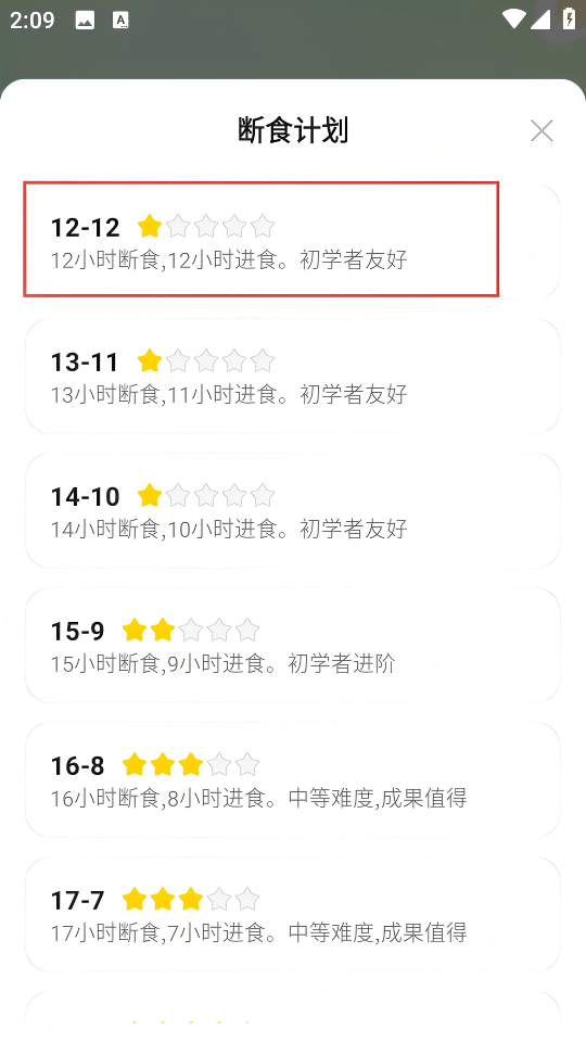 3、在断食计划选择列表中,选择“12-12”断食计划。