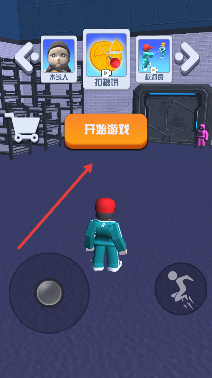 1、点击开始游戏按钮,进入游戏并选择木头人等关卡开始挑战。
