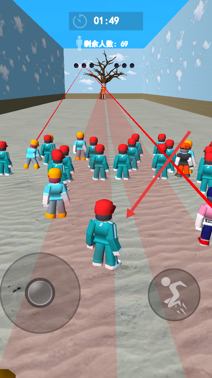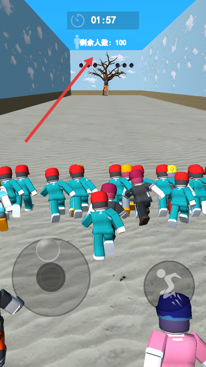 2、在木头人关卡中,注意剩余人数和时间,在合适时机移动,向目标前进。