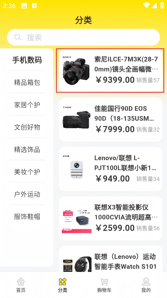 1、点击【手机数码】分类,进入手机数码商品列表页面。