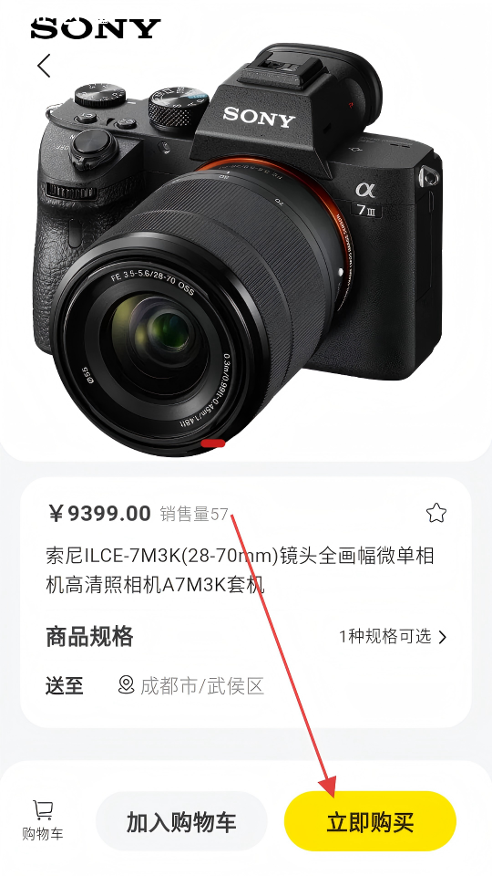 3、在商品详情页,点击【立即购买】,进入商品规格选择页面。