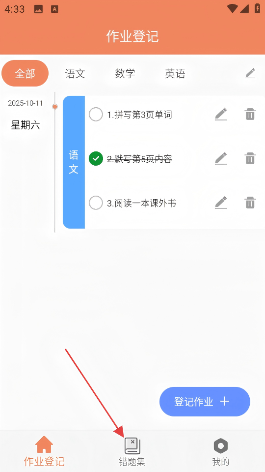 4、实时管理已登记的作业,清晰展示每日作业任务,提醒学生及时完成,避免因遗漏作业影响学习进度。