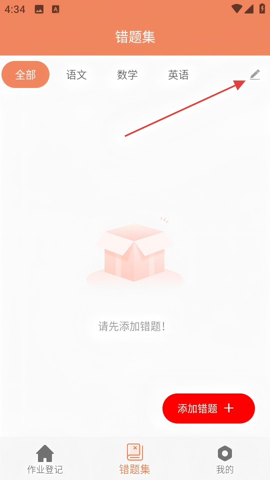 2、在错题集页面,点击右上角编辑图标,进入分类管理页面。