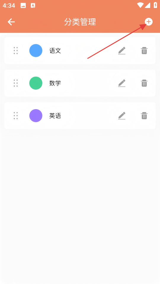 3、在分类管理页面,点击右上角“+”号,弹出添加分类窗口。