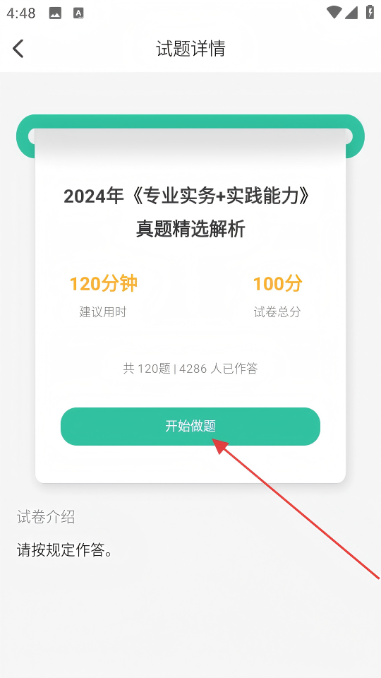 3、在试题详情页,点击【开始做题】,进入真题做题界面。