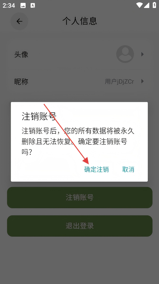 3、在个人信息页面,点击【注销账号】,弹出“注销账号”确认弹窗。