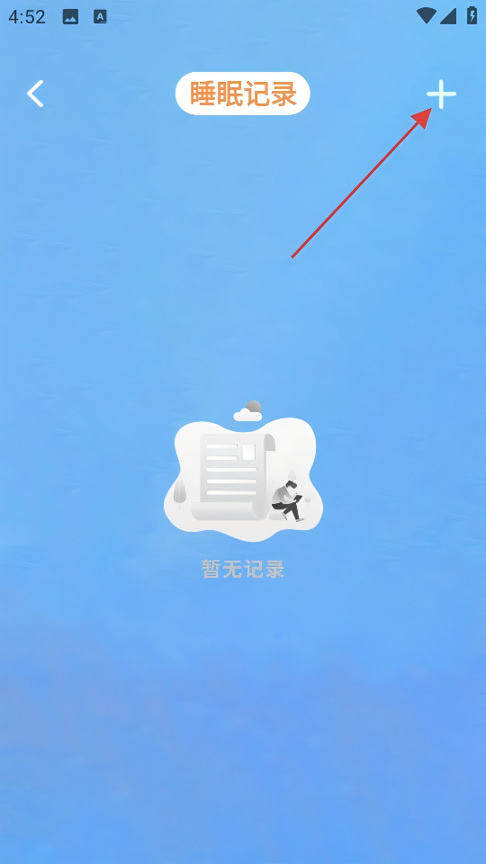 3、在睡眠记录页面点击右上角“+”号,进入睡眠记录添加页面。