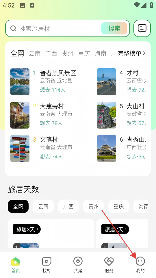 2、将全国景区/旅居村按城市区域分类,细化资源划分维度,减少用户查找时间,快速定位对应城市的旅居资源。