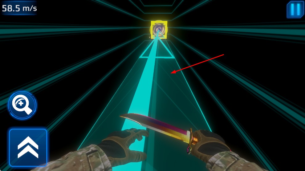 3、按照提示,加速登上平台飞向高处,穿过蓝色漩涡状区域。
