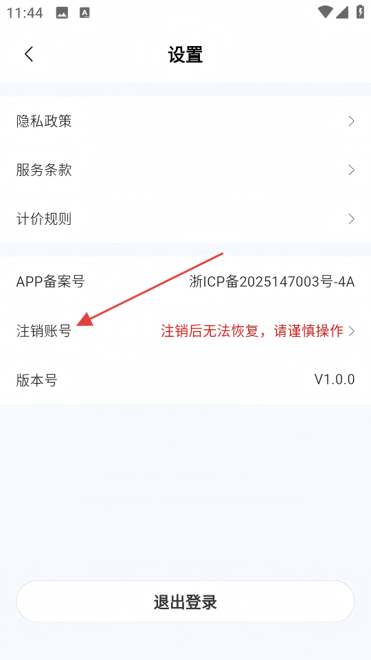 3、在设置页面点击【注销账号】,进入注销申请页面。