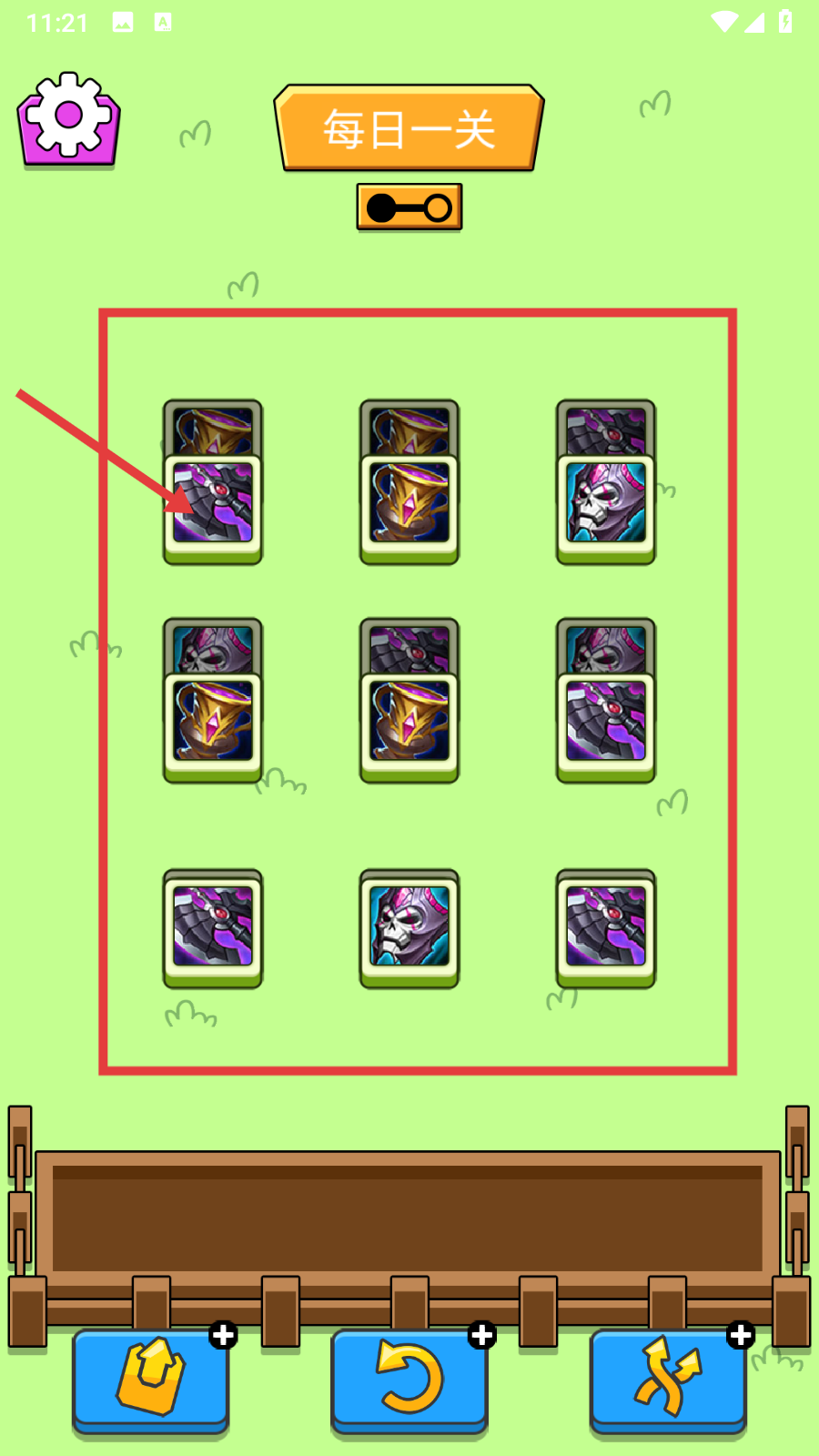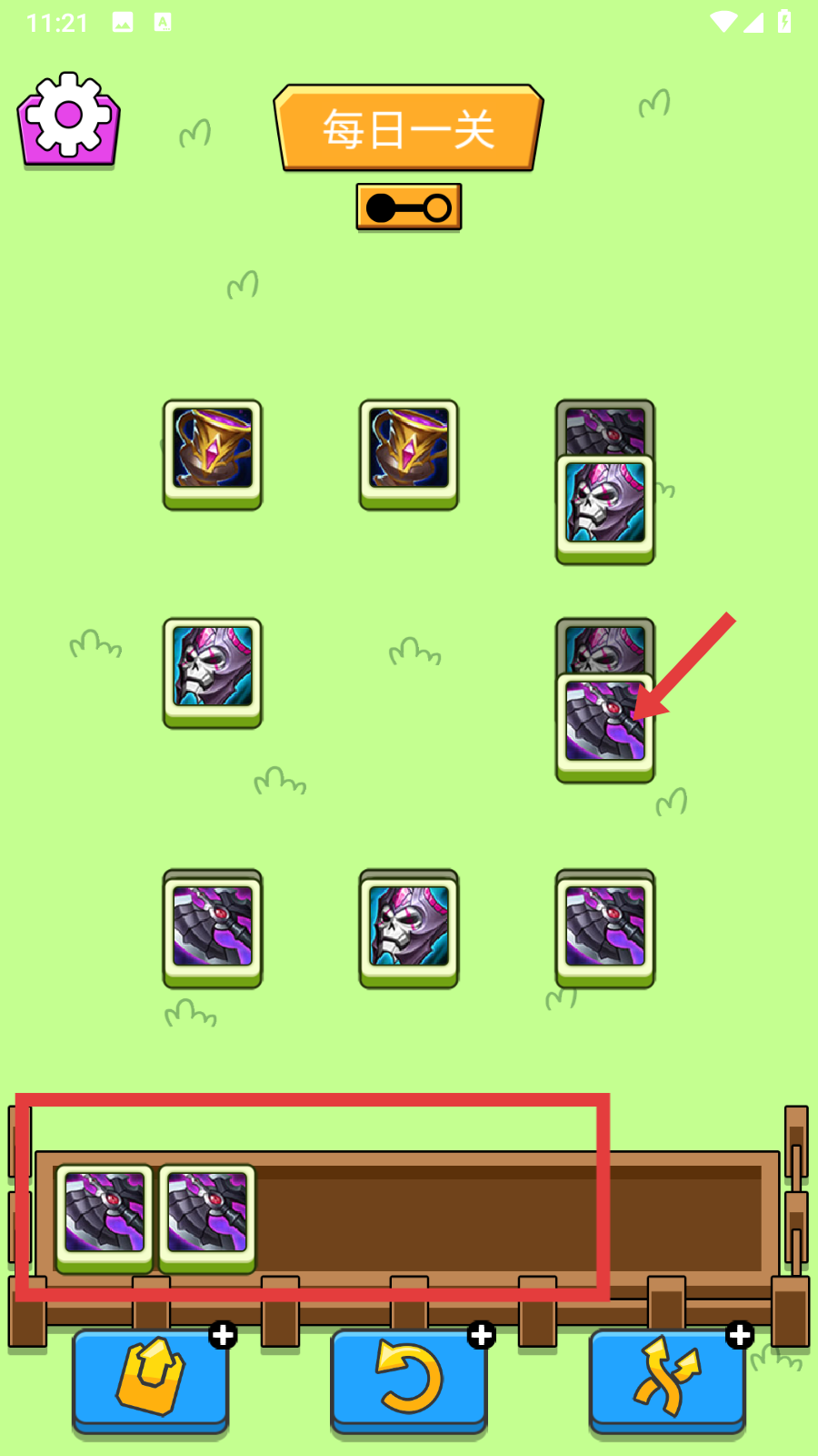 1、延续经典三层卡牌消除机制,点击选中卡牌移至底部槽位,三个相同图案即可消除,规则简单易懂。