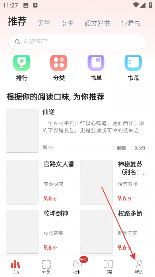 1、在书城页面底部,点击【我的】选项,进入个人中心页面。