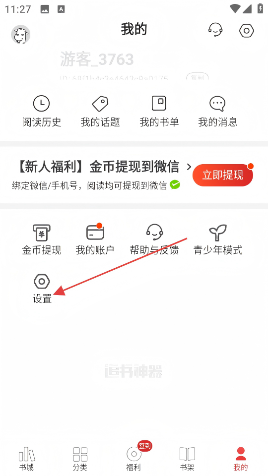2、在个人中心页面,点击【设置】选项,进入设置页面。