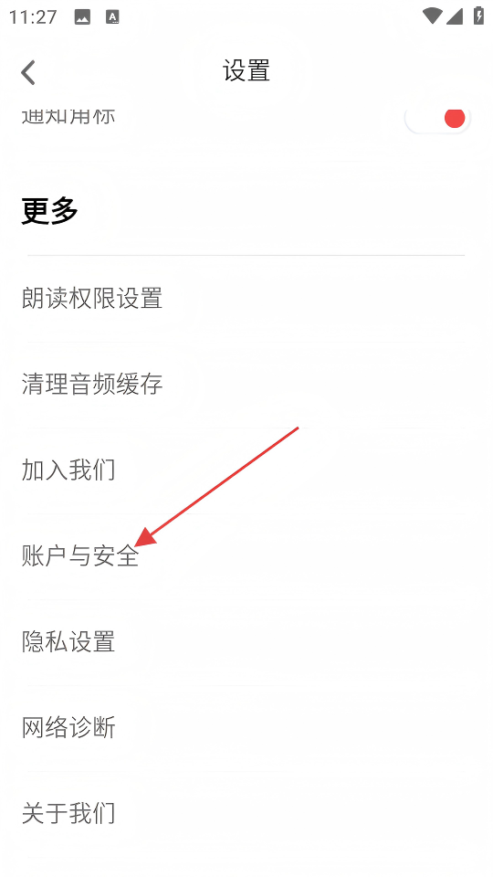 3、在设置页面,点击【账户与安全】选项,进入个人信息页面。