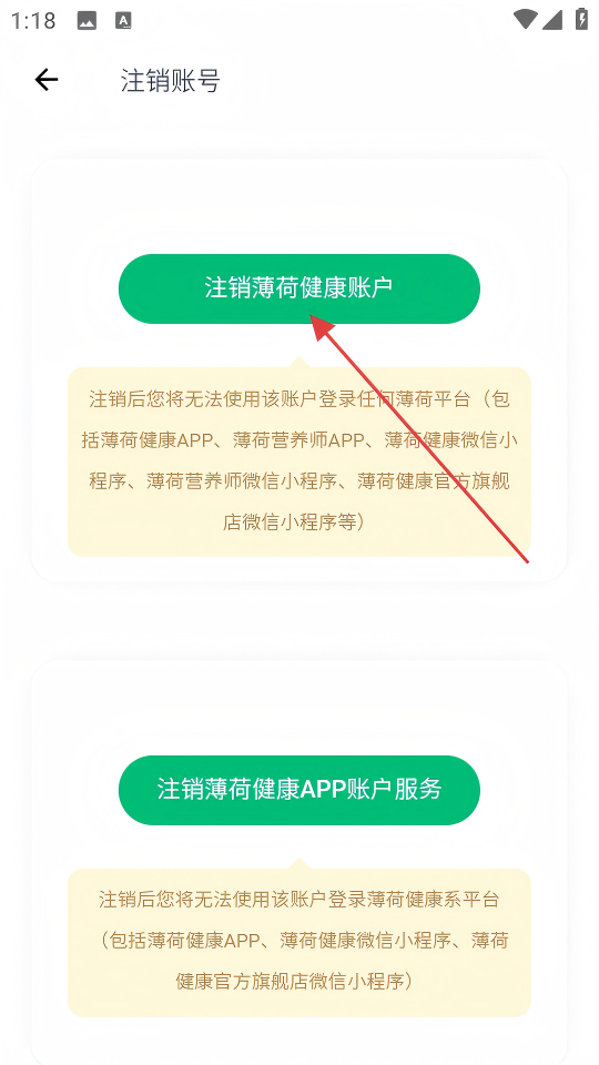4、在注销账号页面,点击【注销薄荷健康账户】按钮,完成账号注销操作。