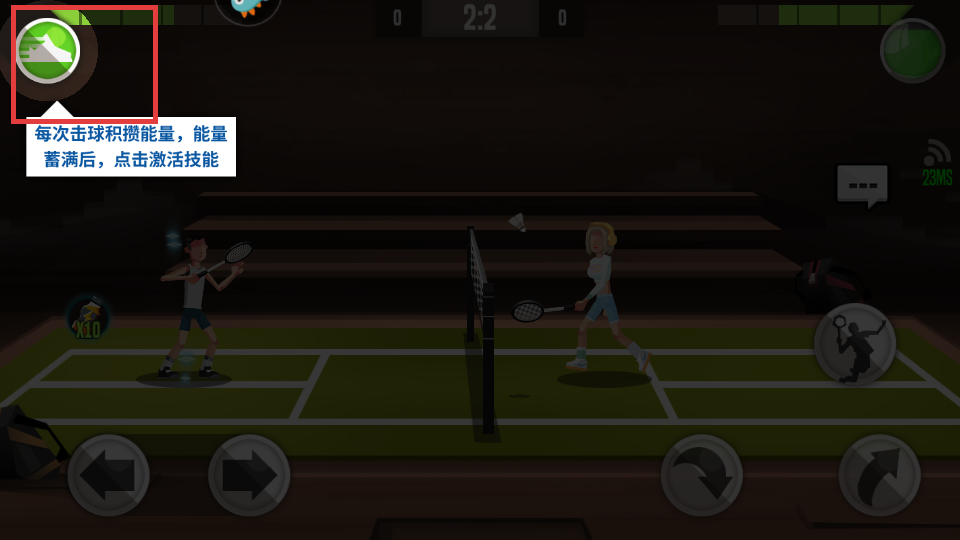 4、每次击球积攒能量,能量蓄满后点击激活技能,提升比赛表现。