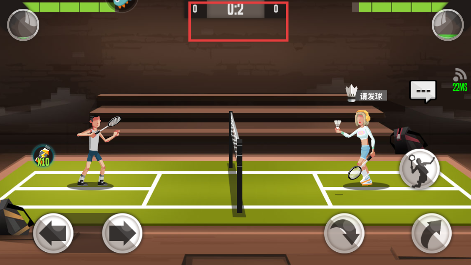 2、利用移动和击球按钮,控制角色移动与击球,推进比赛进程。