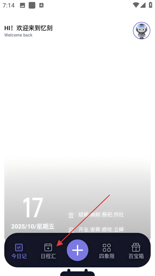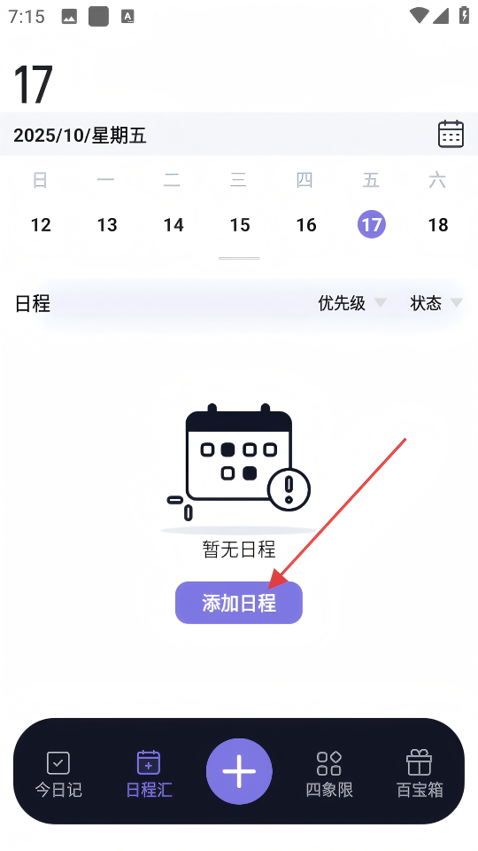 1、在首页底部功能栏,点击【日程汇】选项,进入日程页面。
