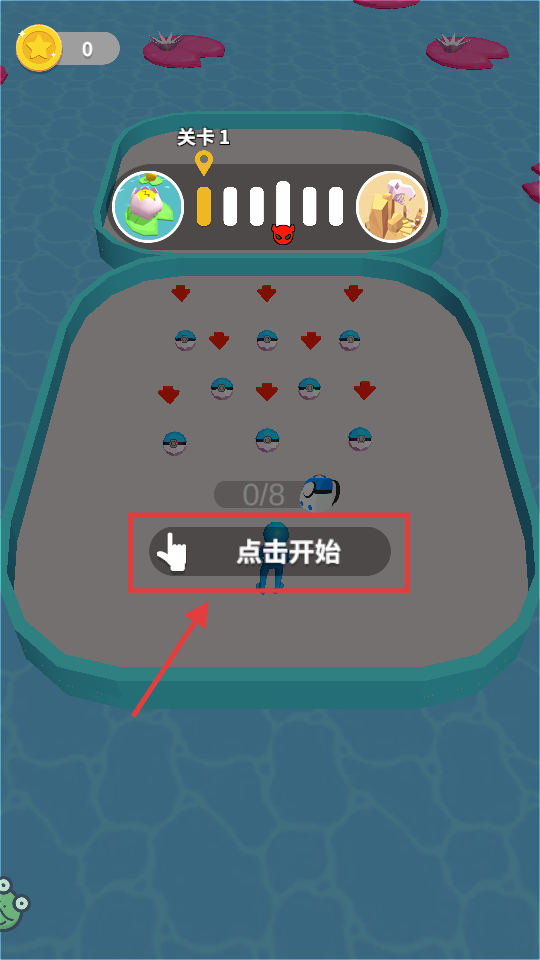 1、点击开始进入关卡,需收集8个精灵球,开启跑酷收集,为战斗备精灵。
