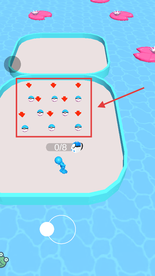 2、在跑酷区按序收集带红心的精灵球,规划路线高效收集,达成8个目标。