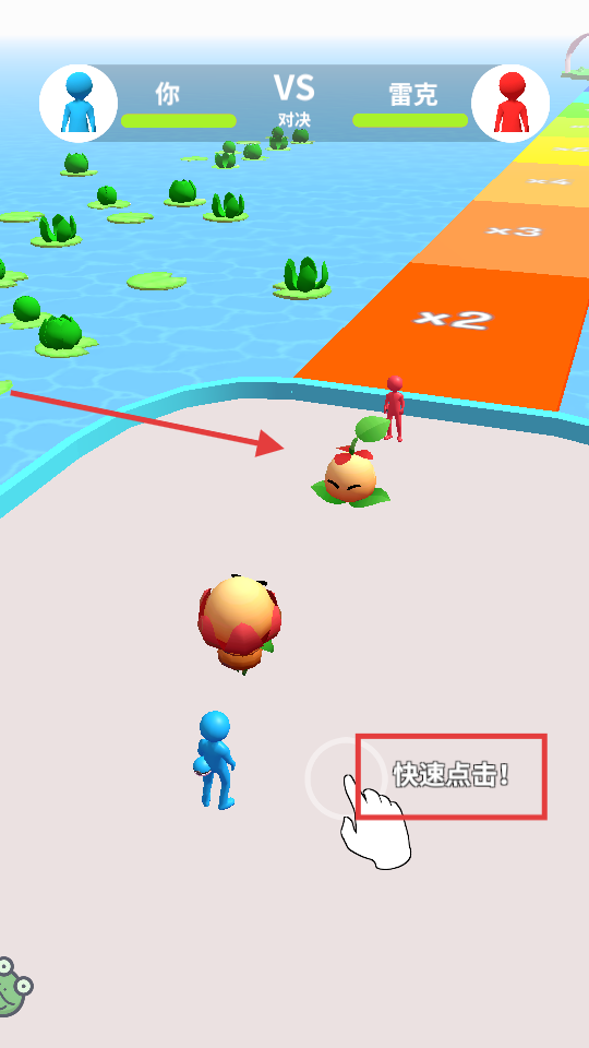 4、与【雷克】对决时,快速点击增强战力,借特性击败【果实-精灵】。