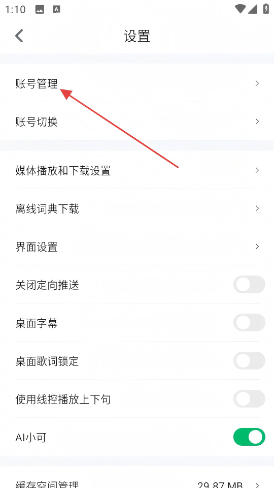 2、在设置页面,点击【账号管理】选项,进入账号管理页面。