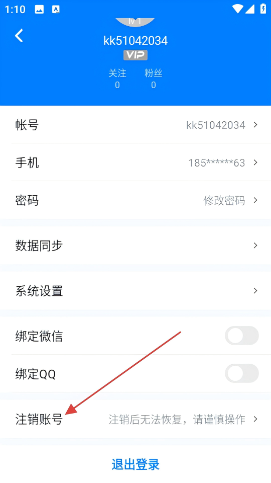 3、在账号管理页面,点击【注销账号】选项,进入注销账号风险提示页面。