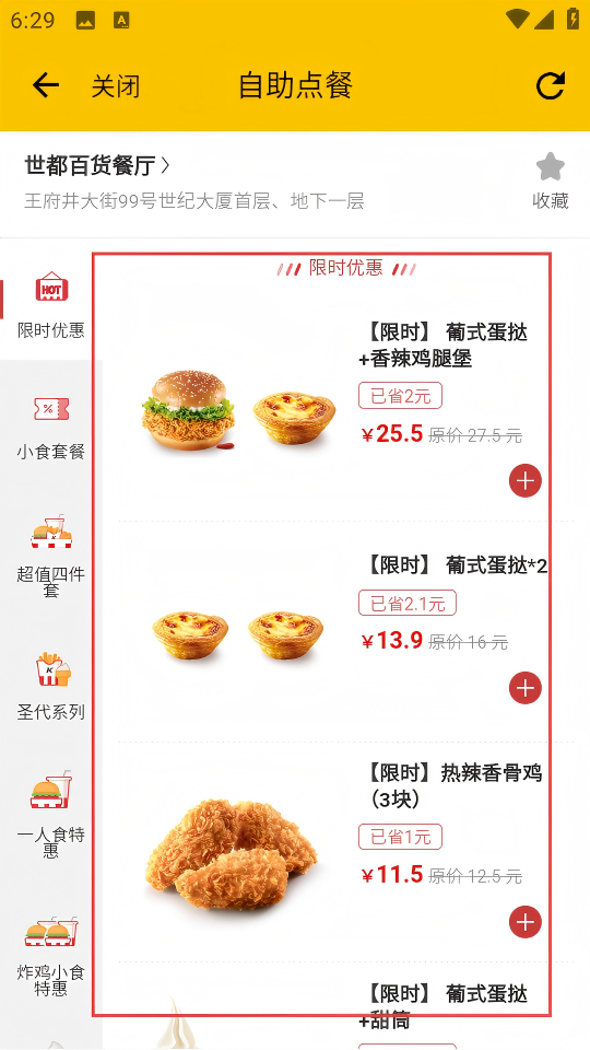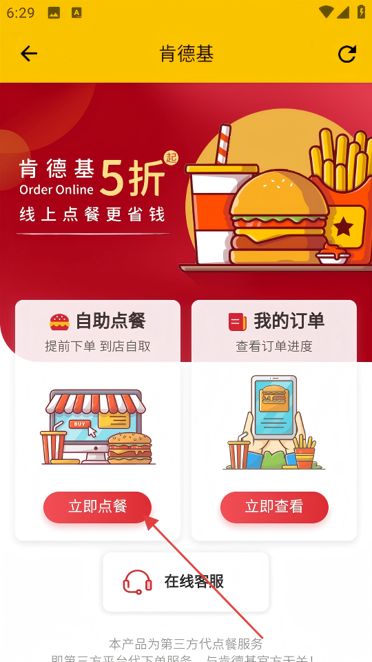 3、在肯德基页面,点击【立即点餐】按钮,进入自助点餐页面。