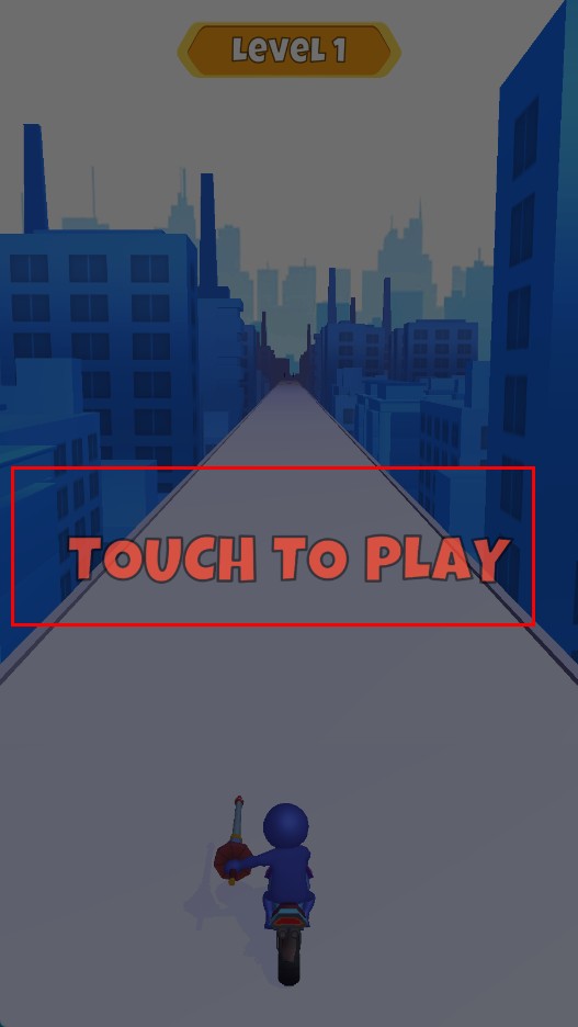 1、点击【TOUCH-TO-PLAY】文字区域,开启疯狂骑士3d游戏。