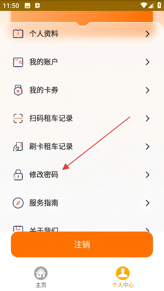 3、在个人中心页面,点击【修改密码】选项,进入密码修改页面。