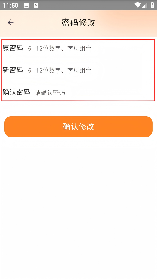 4、在密码修改页面,依次输入原密码、新密码、确认密码后,点击【确认修改】按钮,完成密码修改操作。