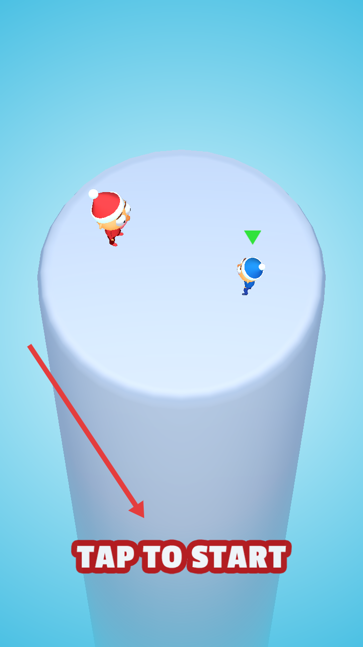 1、点击TAPTOSTART开始,在圆柱场景中操控角色,开启投掷雪球击败对手的挑战。
