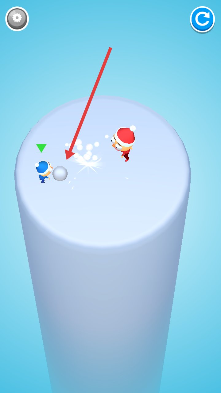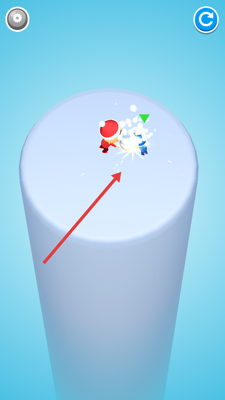 3、持续投掷雪球,将对手击出圆柱区域,完成击败对手的关卡目标。