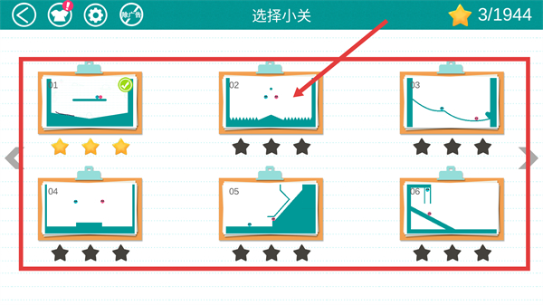 1、在【选择小关】界面,点击目标关卡卡片(比如标02的关卡),就能进入该关卡开启画线互动挑战啦。