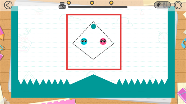 2、进入关卡后看到【蓝粉小球】和虚线区域,要通过画闭合线让这两个小球能靠近互动哦。