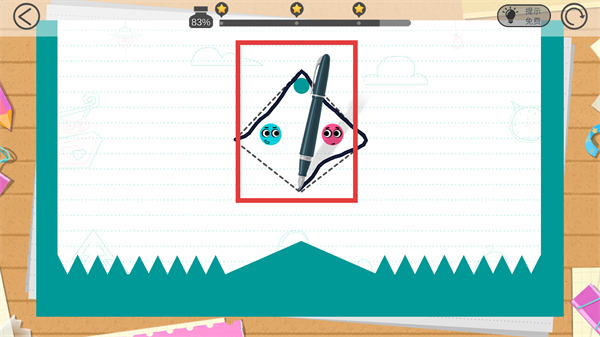 3、用画笔沿虚线画完整闭合区域,进度条会逐步填满,等线条闭合后小球就能靠近完成亲亲互动啦。