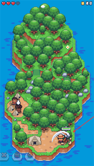 2、操控角色使用【斧头】砍伐岛上树木收集基础资源为后续建造房屋制作工具积累必要材料。