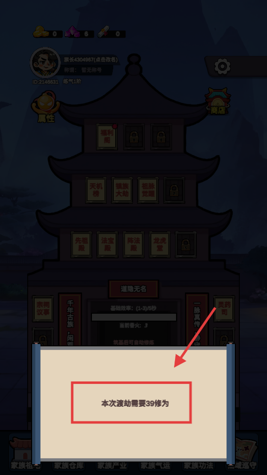 1、本次渡劫需【39修为】,需提前积累修为,确保修为足够后再尝试渡劫,提升成功率。
