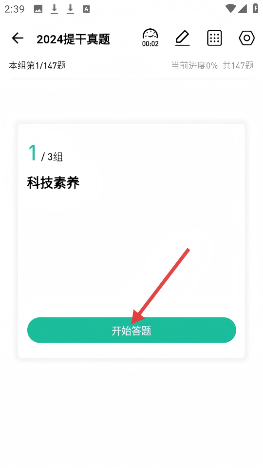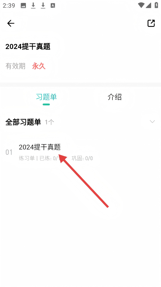 2、在【2024提干真题】详情页,点击【2024提干真题】练习单,进入答题准备页面。
