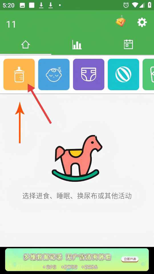 2、点击带有奶瓶图标的橙色按钮,进入喂食页面。