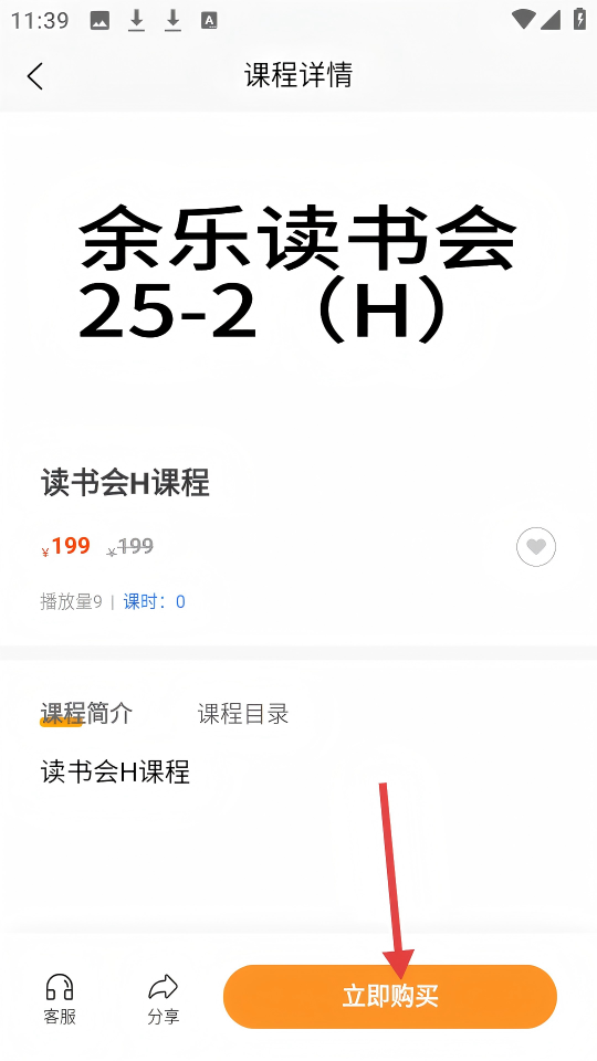 3、在余乐读书会25-2(H)课程详情页,点击【立即购买】按钮,进入购买课程页面。
