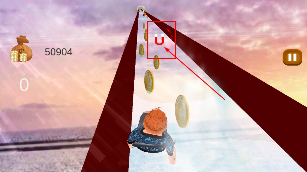 4、遇到磁铁道具时,靠近获取,能帮助吸附更多金币,提升收益。