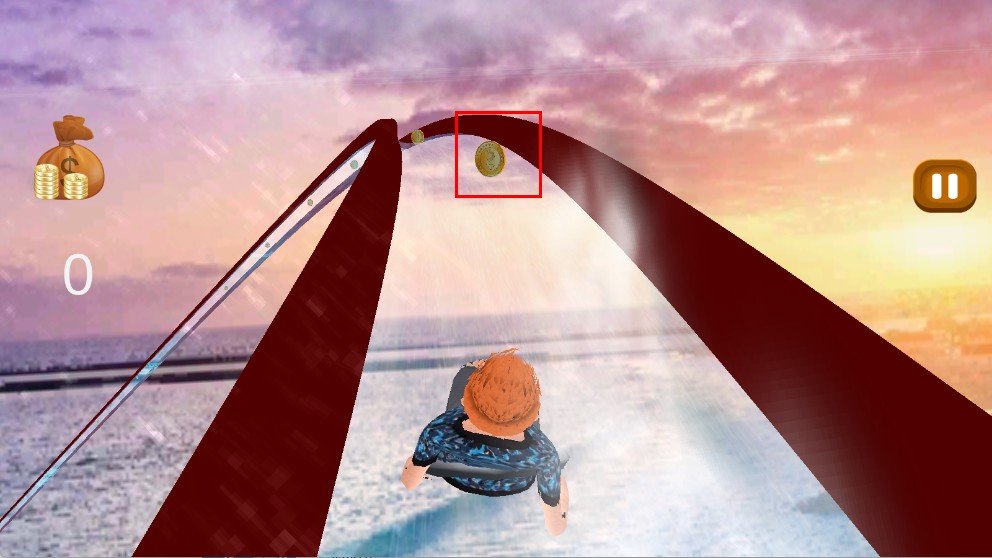 3、滑行时,移动角色触碰金币,积累游戏内的资源。