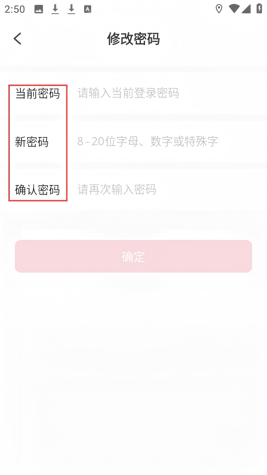 4、在【修改密码】页面,依次输入【当前密码】、【新密码】、【确认密码】,然后点击【确定】即可修改密码。