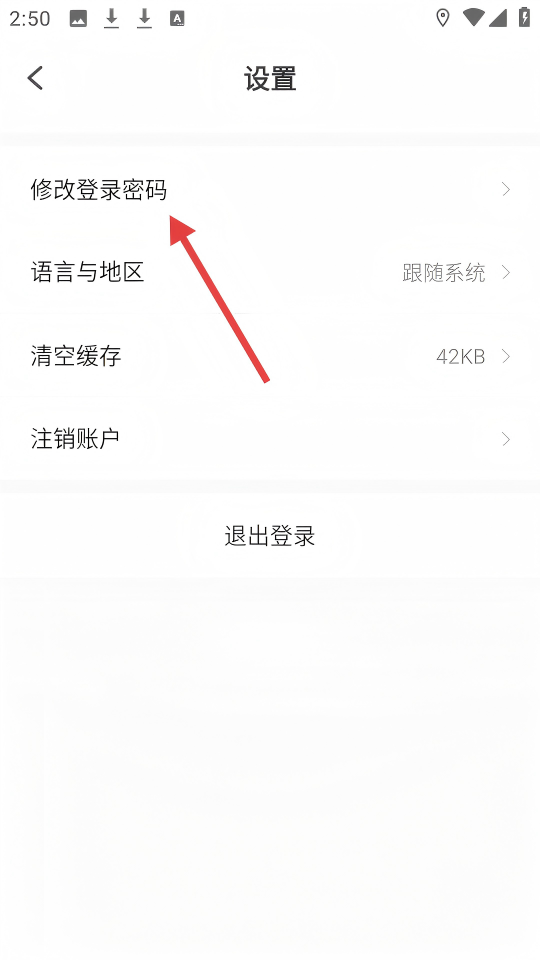 3、在【设置】页面,点击【修改登录密码】选项,即可进入修改登录密码的流程。
