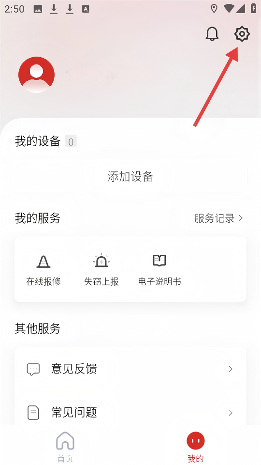 2、在【我的】页面,点击右上角的设置图标,进入设置界面。