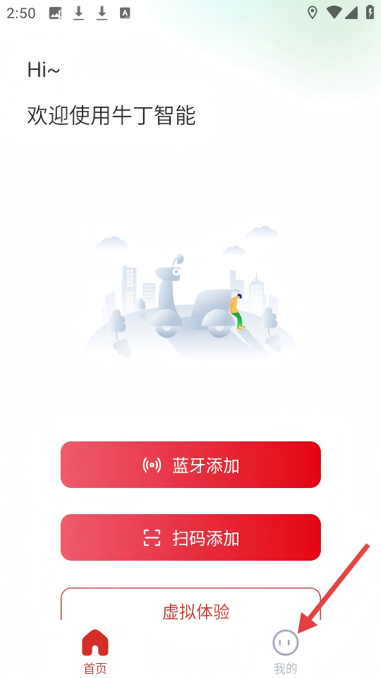 1、在牛丁智能欢迎页面,点击右下角【我的】。