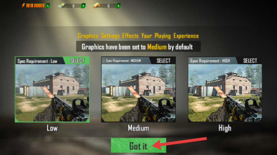 1、点击【Got-it】,确认图形设置,进入游戏,开启任务挑战。