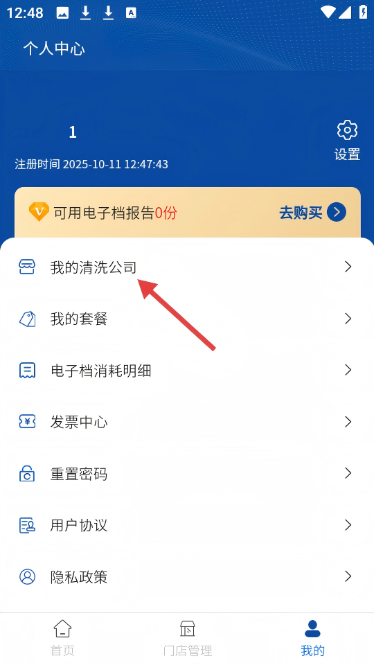 2、在个人中心页面,点击【我的清洗公司】选项。
